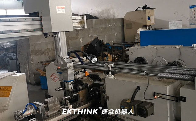 桁架式上料機械手應用滾絲機加工內筒軸,是桁架式上料機械手在滾絲機加工上的應用案例。我們是專業為各類機床上下料提供自動化解決方案的企業。18