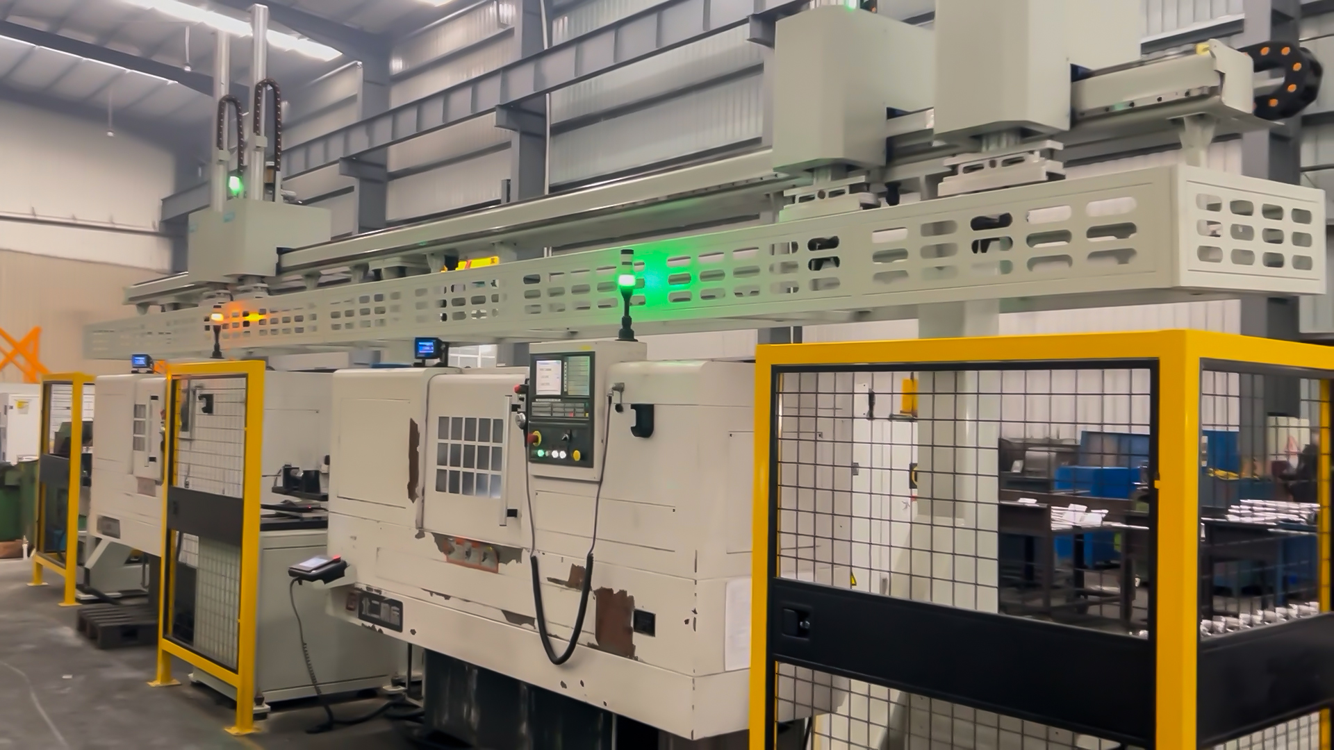 視頻簡介:數控外圓磨床一拖二是指桁架機械手與數控外圓磨床配合使用,用于實現工件在一臺桁架機械手的幫助下,在兩臺數控外圓磨床之間自動搬運和定位,請觀看視頻介紹。03