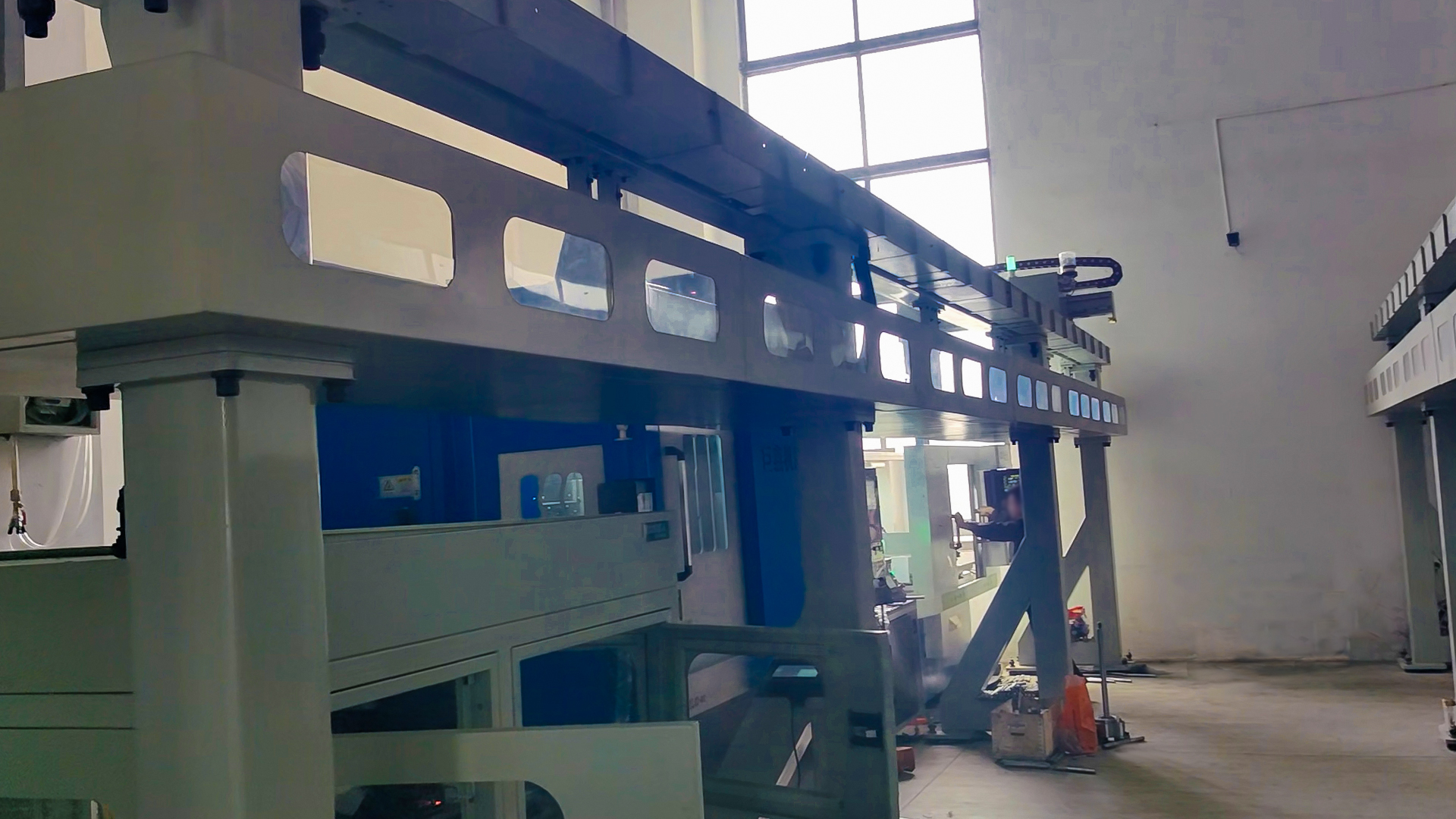 五軸桁架配AGV料架立車與磨床連機案例